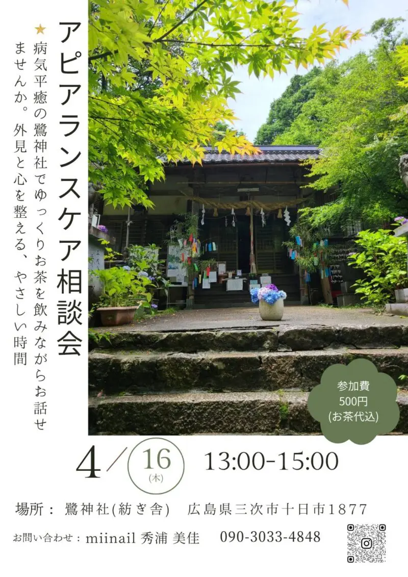 【4月16日(木)】アピアランスケア相談会【三次市 鷺神社】<イベント告知>