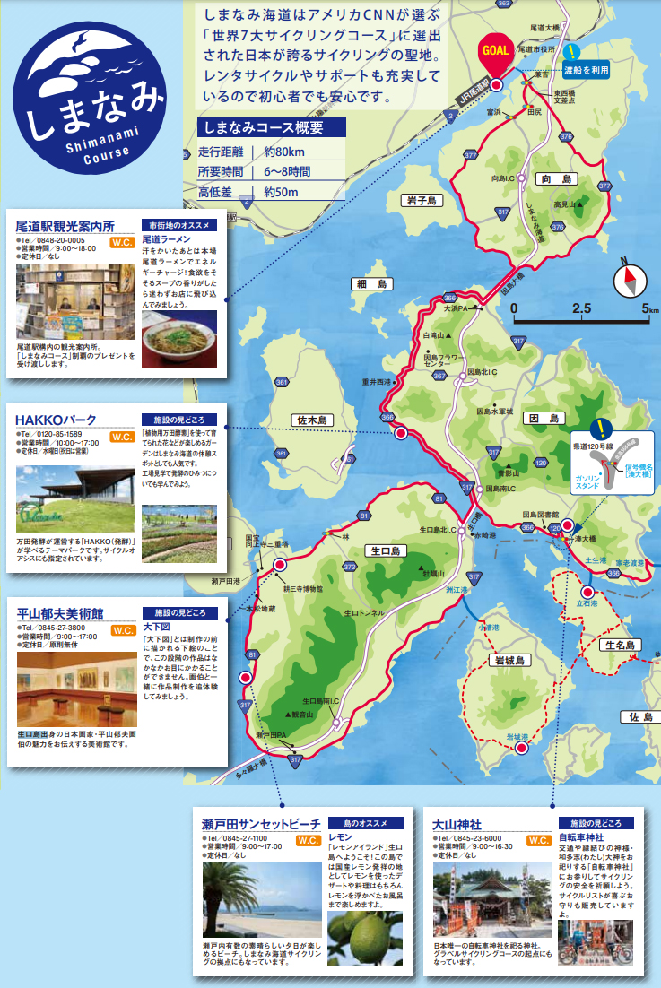 尾道駅観光案内所をゴールとした約80kmのコースです。