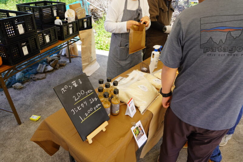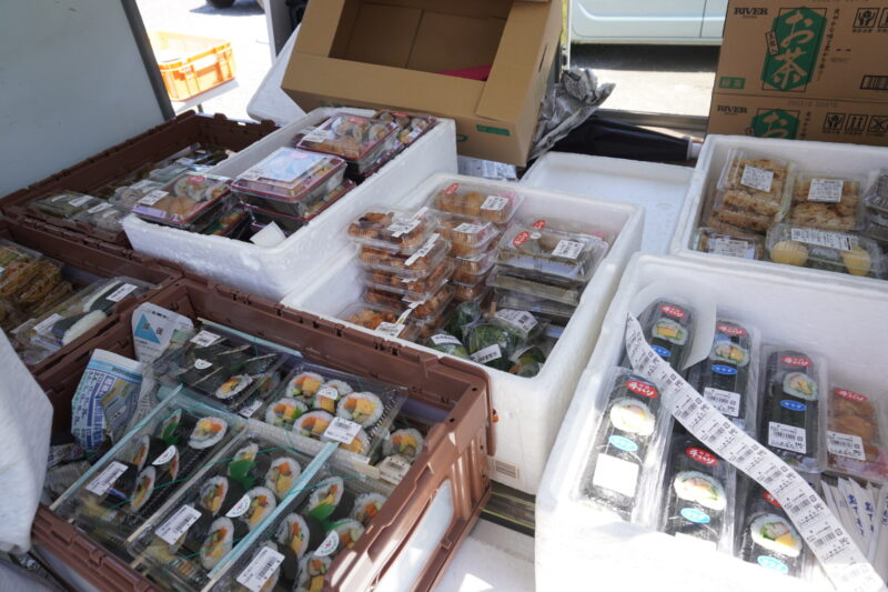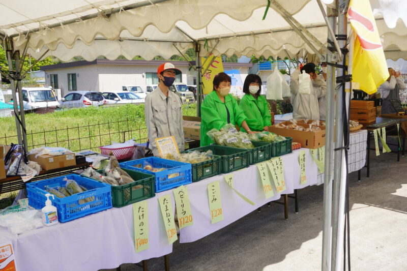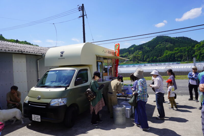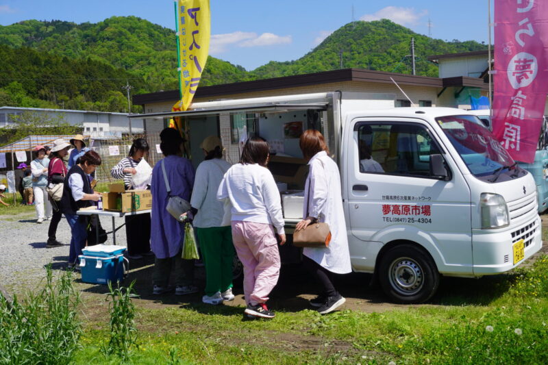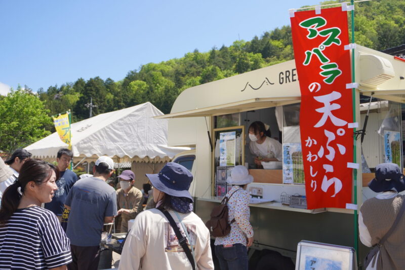 キッチンカーでは「+kitchen タスキッチン」さんがアスパラの天ぷらを販売、夢高原市場さんはお弁当や仕出しを販売されていました。