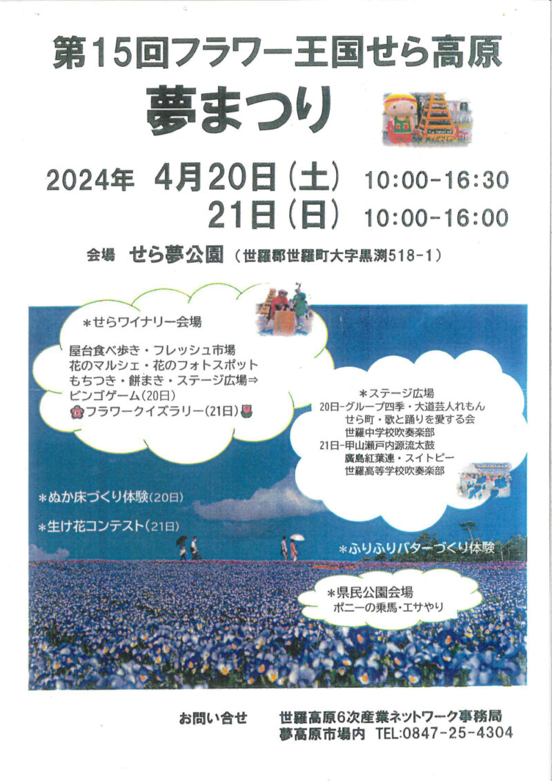【4月 20 日 (土)・21日(日)】  第15回フラワー王国せら高原夢まつり開催【せら夢公園】<イベント告知>