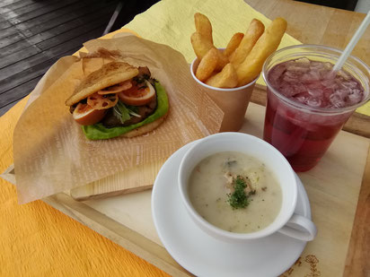 メニューは定番人気の「ライスバーガー」「パスタ」「スイーツ類」に、新たに「Aランチ(1,800円)」「Bランチ・日替りの丼物(1,100)」を準備されているとのお話でした。楽しみです!