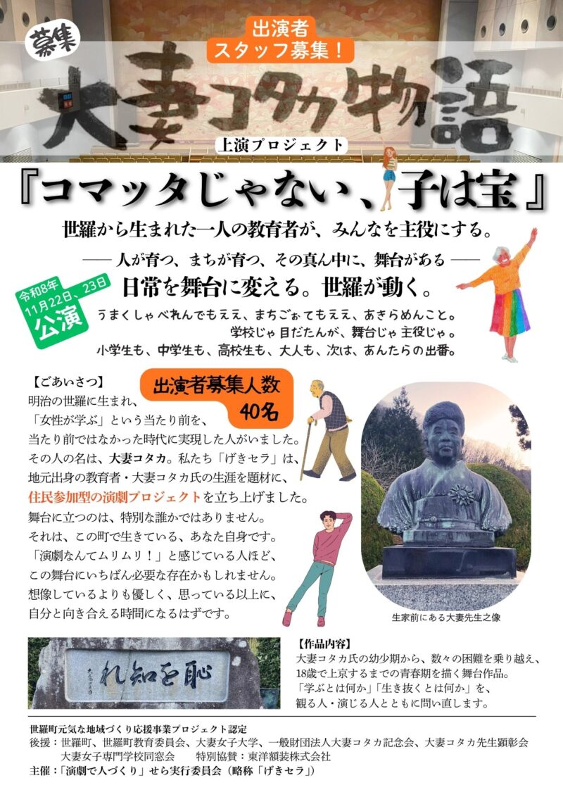 世羅町の名誉町民で、大妻女子大学を創立した大妻コタカ先生を題材にした演劇プロジェクトがスタートします!