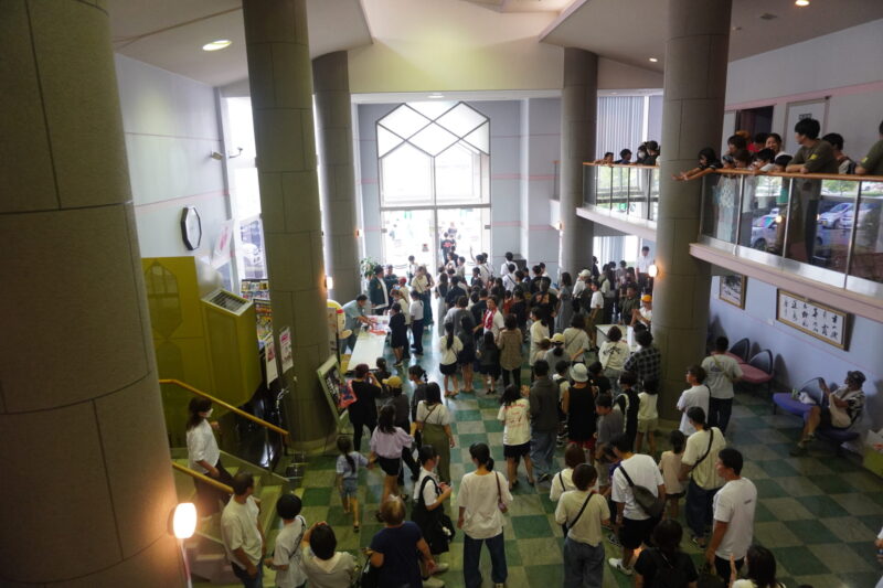 続々とお客さんが集まっています。黄色い帽子が被った郡Pのスタッフの皆さんが誘導します。