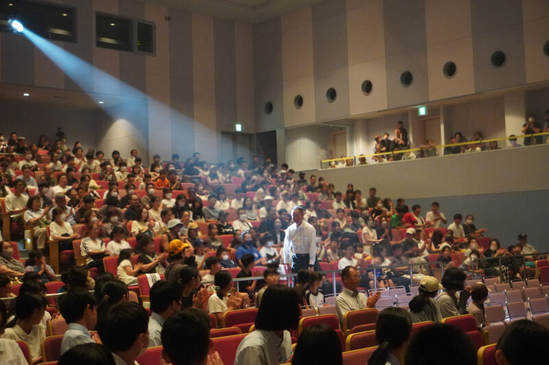 来賓のご紹介や観客の気持ちを高めるように拍手の練習などを交えて盛り上げます!