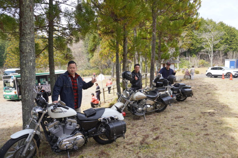 たかちゃんは地元の先輩で愛車はDS400です。たけさんはりょうちゃんの父親で親子でバイクに乗っています。愛車はFXDFファットボブです。