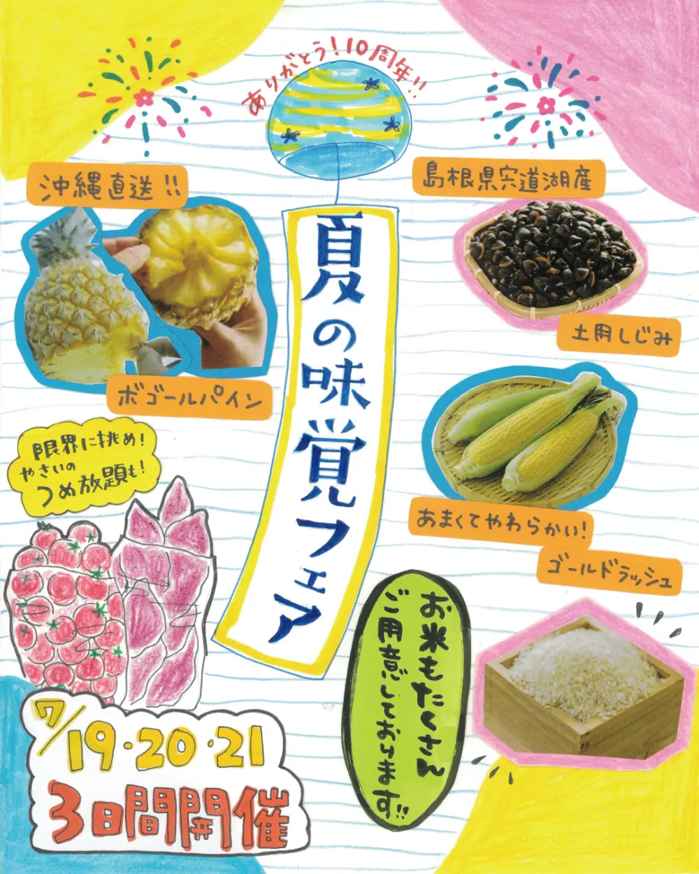 【7月19日(土)~21日(月)】道の駅世羅10周年感謝祭「夏の味覚フェア」【道の駅世羅】<イベント告知>