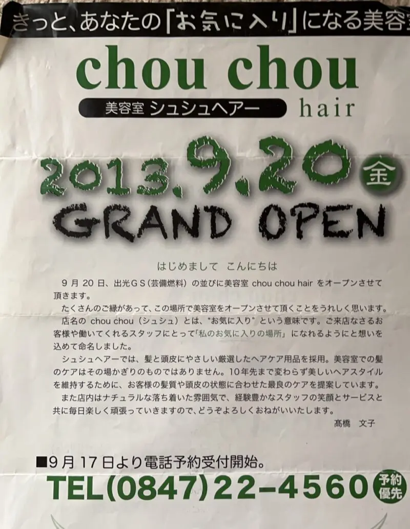 シュシュヘアーさんは2013年にオープンしました。