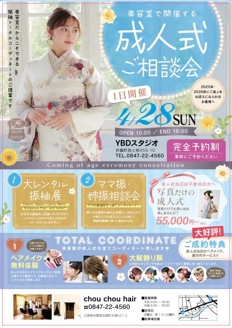 シュシュヘアーでは毎年「成人式相談会」を開催しています。
