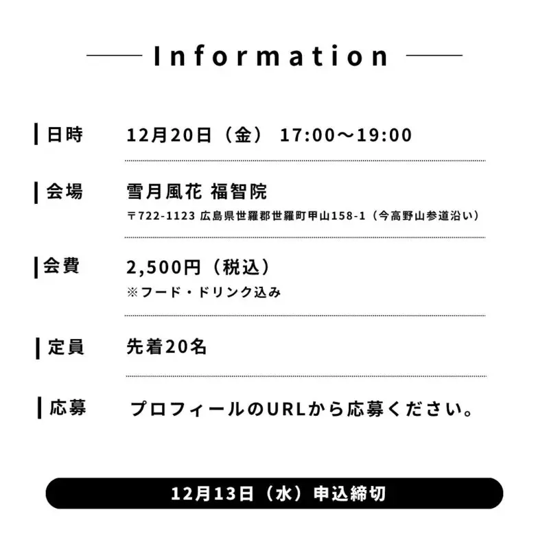 会費:2,500円(税込、フード・ドリンク込み)