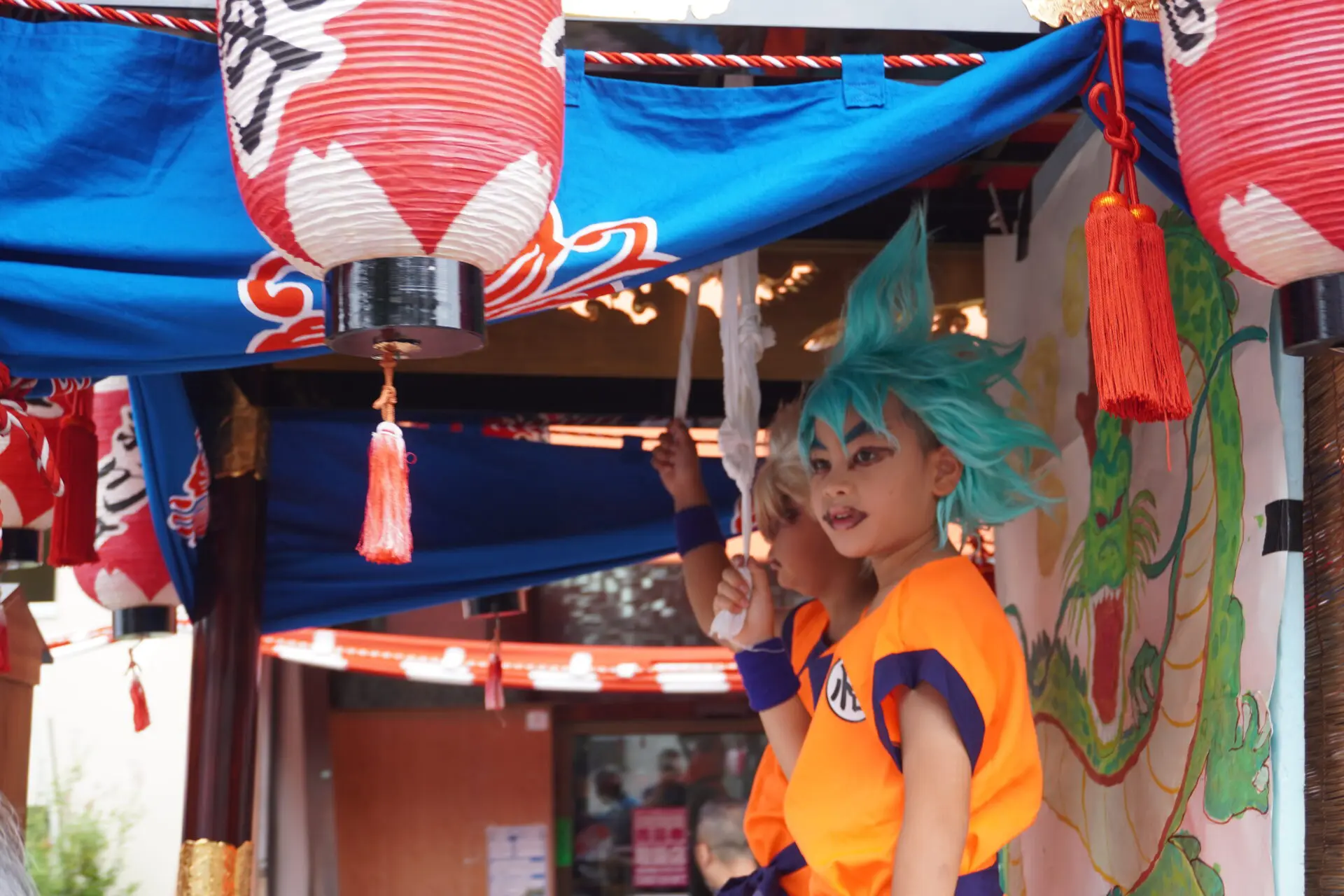 西上原上新川町の吊り人形はドラゴンボールです。かっこいい!日本の人気アニメ作品を題材にした吊り人形ですね。