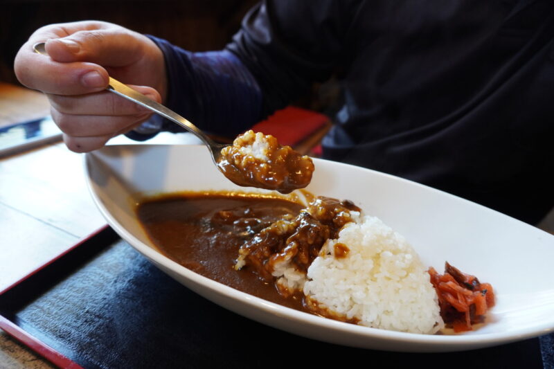 少し辛みある牛スジカレーはお米との相性も抜群です。コクと甘みとスパイスのバランスが絶妙で、