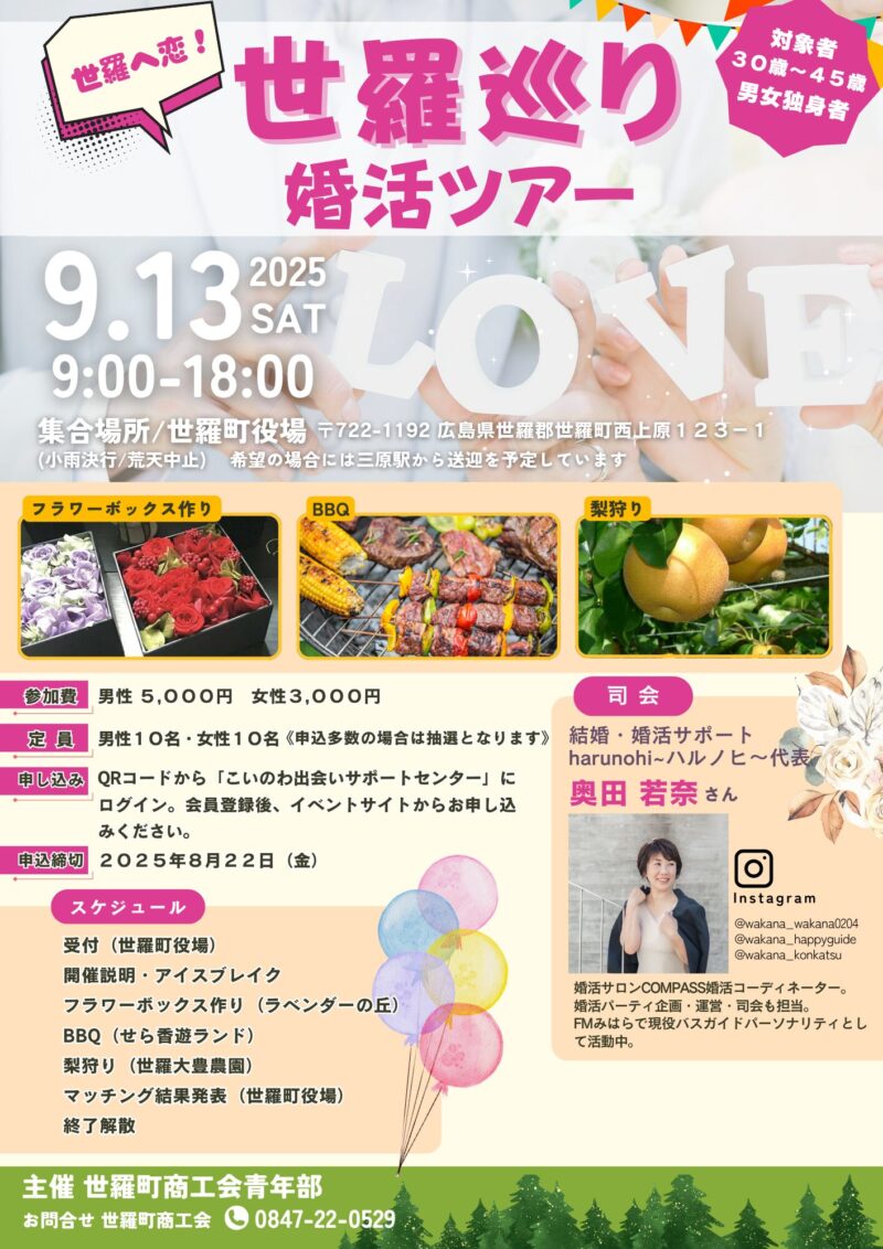 世羅の観光スポットを巡りながら素敵な出会いを!「世羅町合併20周年記念事業 SERAで恋活ツアー」を紹...