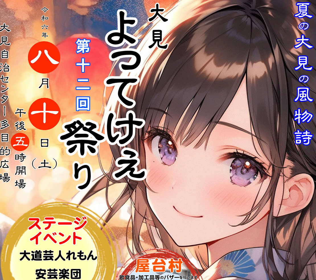 8月10日(土)17時から、世羅町大見地区の夏の風物詩となっている「よってけぇ祭り」が開催されます!
