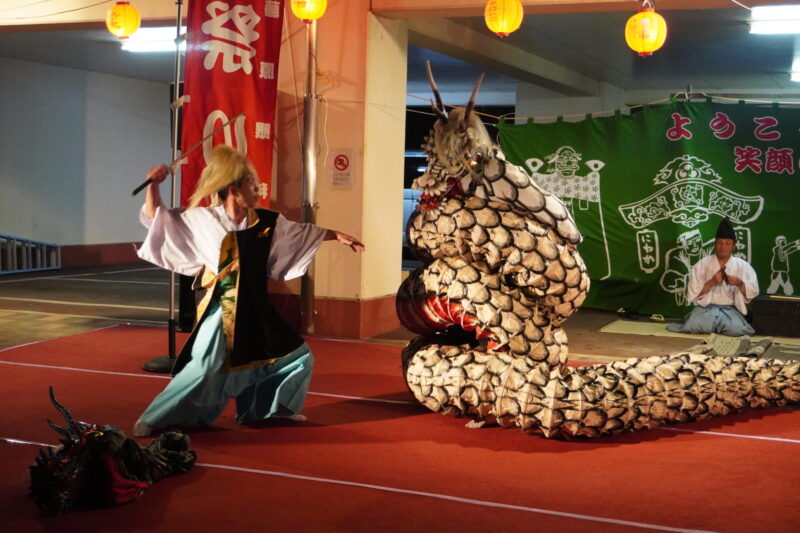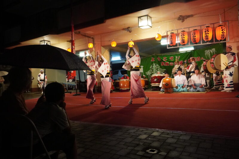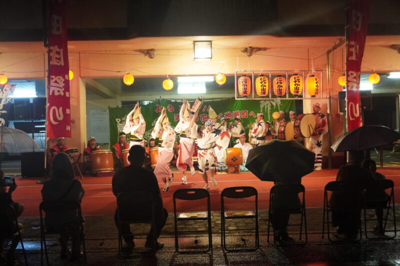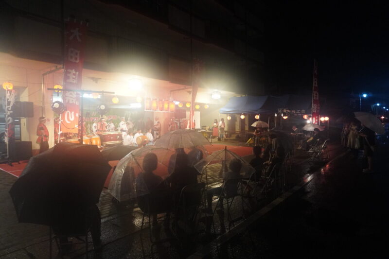 あいにくの雨模様ですが、お客さんは傘を片手に演目を楽しんでいました。