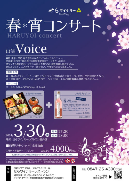 【3月30日(土)】「春*宵コンサート」【せらワイナリー】開催!