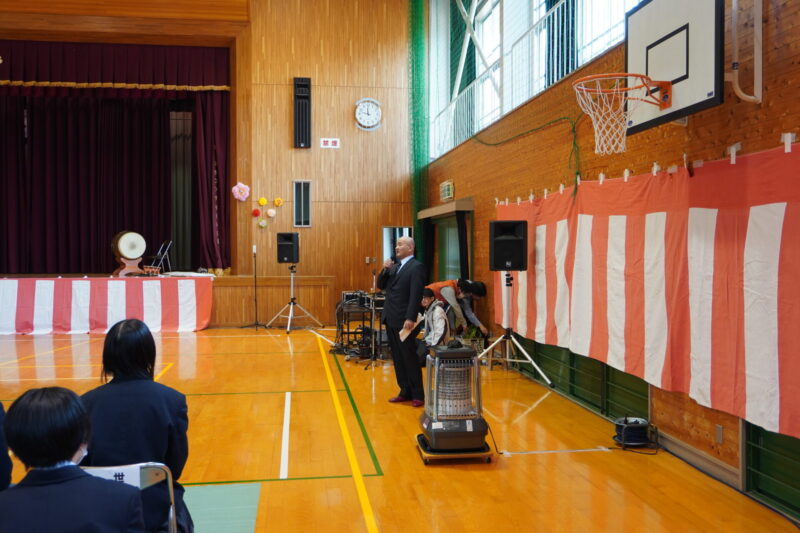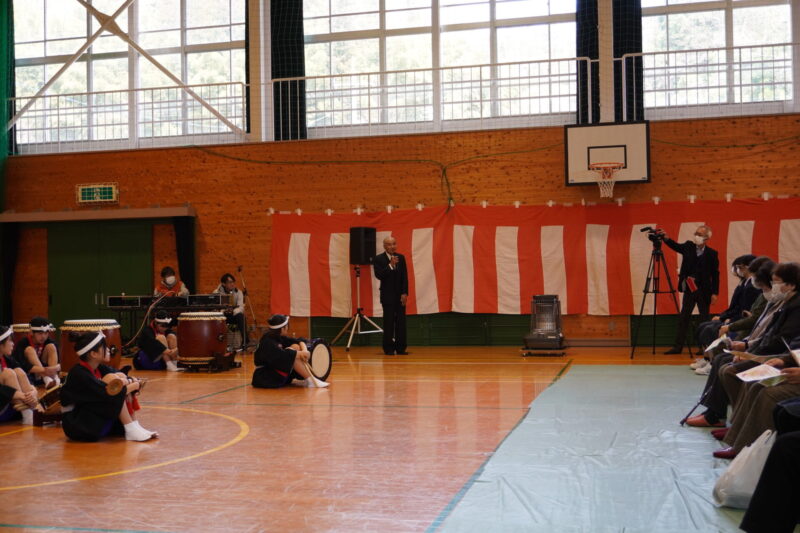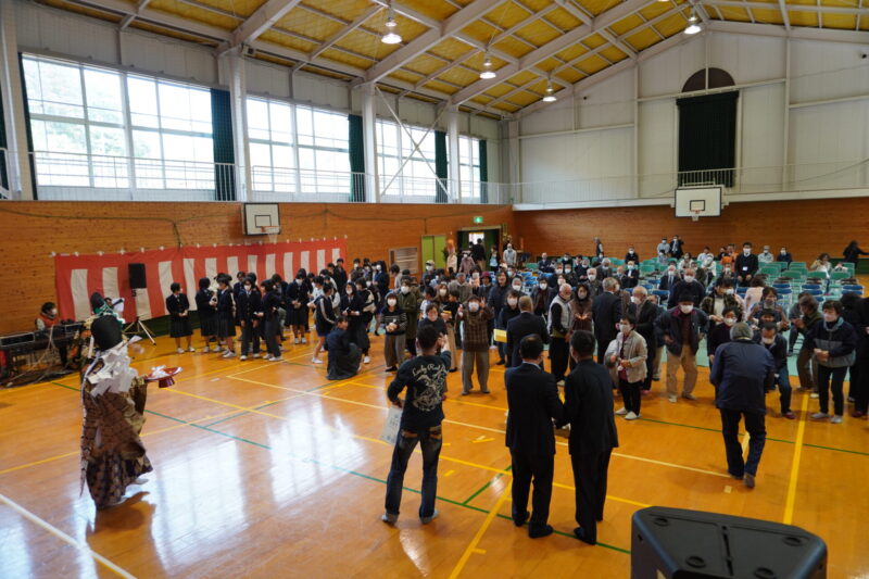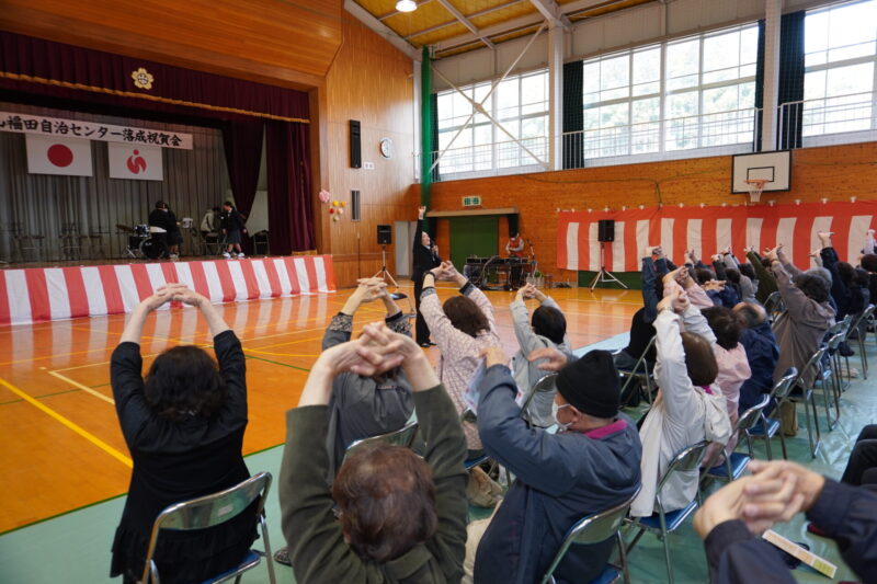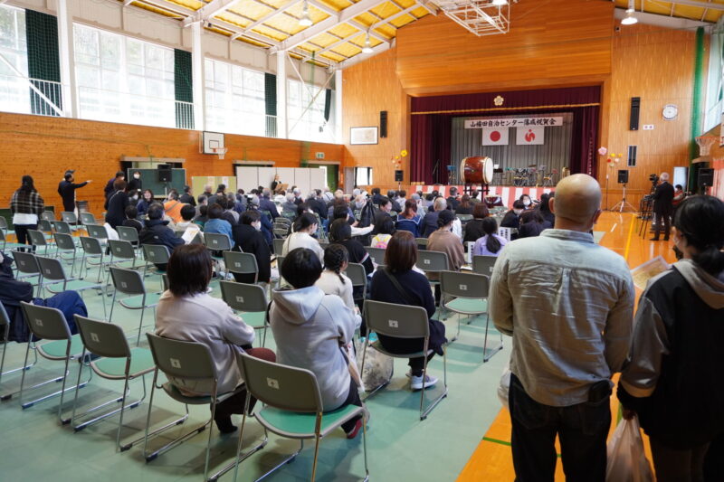 落成式が終了後、新自治センターに隣接する体育館で祝賀会が開催されました。