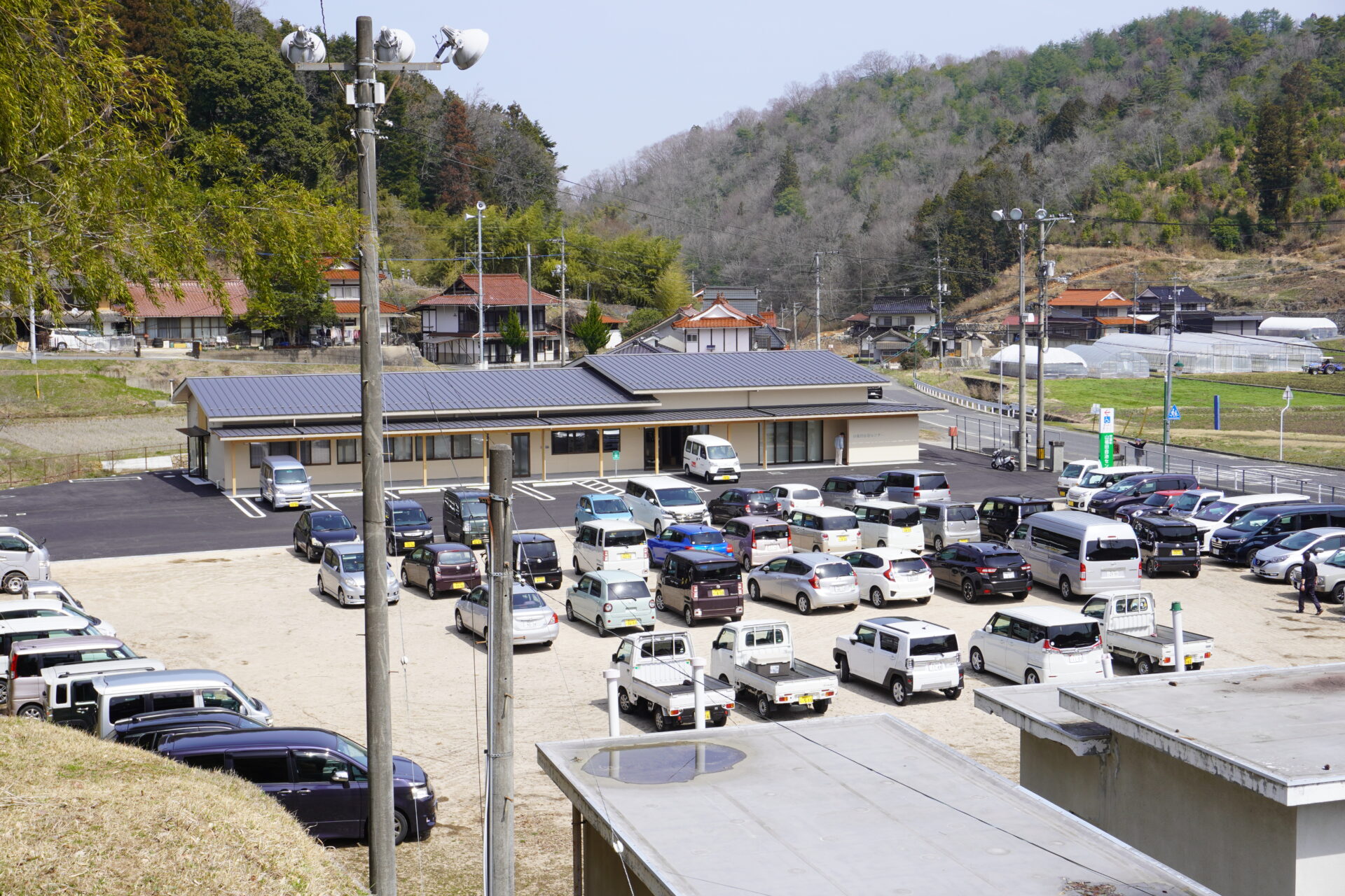 今日の式典の関係者が続々と到着します。車両は100台以上で、駐車場やグラウンドは満車状態になりました。旧自治センターの駐車場も満杯です。