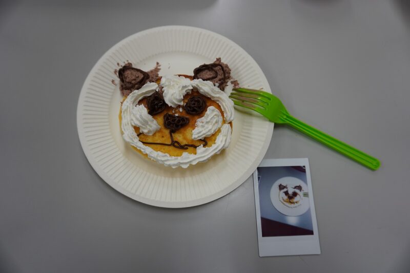 完成したパンケーキアートは、チェキで撮影した後、通路で掲示してもらえます。