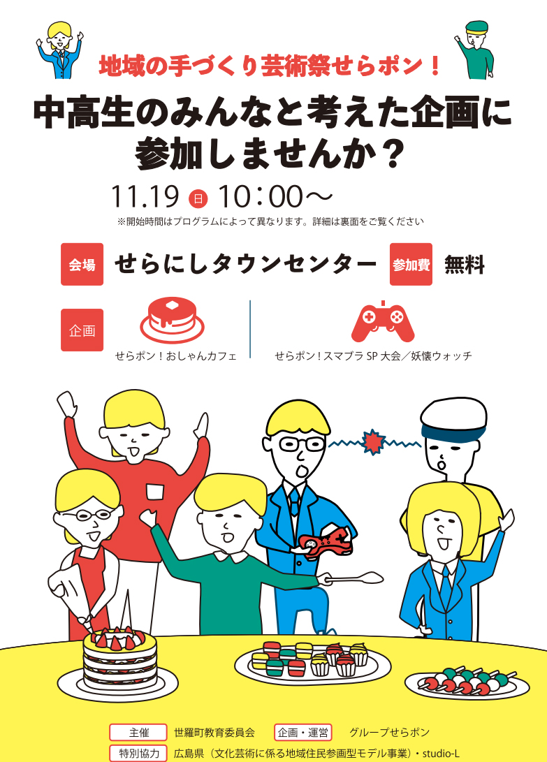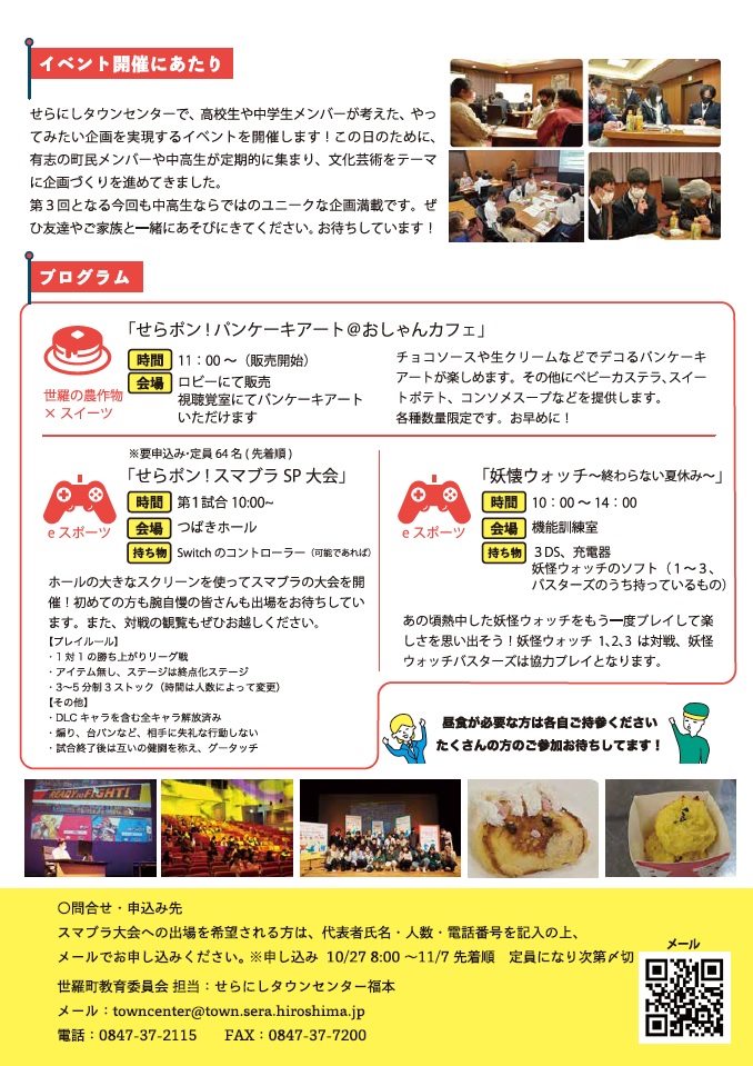 このイベントは世羅町教育委員会が主催で、高校生や中学生メンバーが考えた、やってみたい企画を実現するイベントです。今回で3回目の開催です。