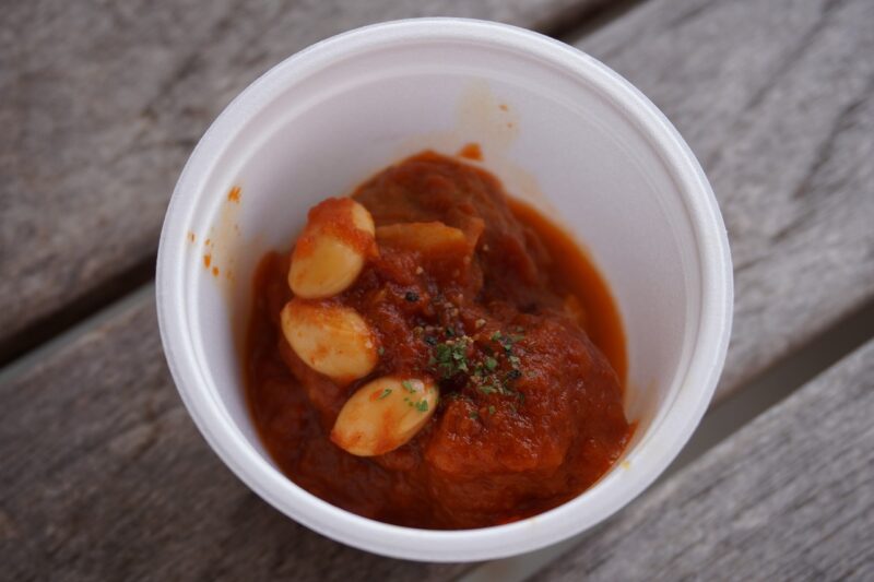 試食スペースとして、ワイナリー内レストラン横のバーベキューコーナーと足湯館が解放されていました。バーベキューコーナーは参加者で徐々に埋まっていきます。