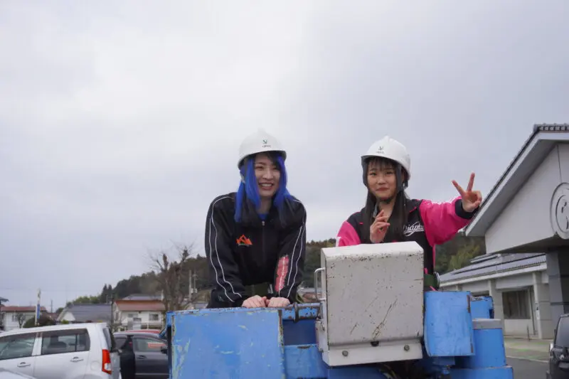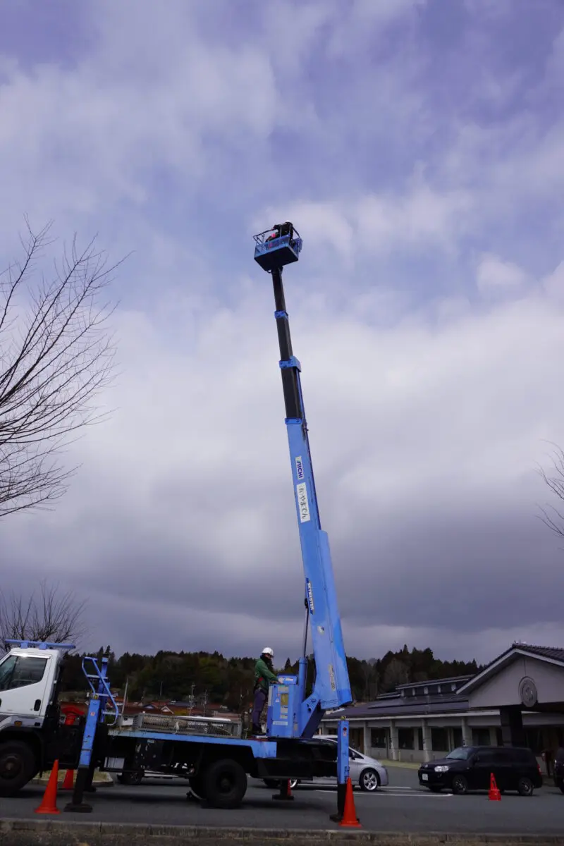 有限会社やまでんさんにご協力頂き、高所作業車と専門スタッフをご準備頂きました!