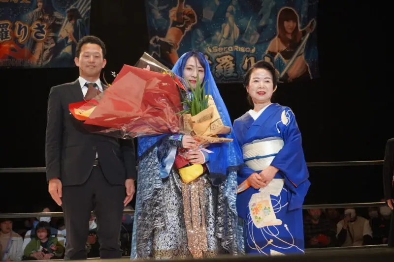 「世羅りさ、成長したでしょう。とっても物静かでプロレスやるようには見えないんですが、内に秘めた強さでここまで成長しました。これからも応援してあげてください」