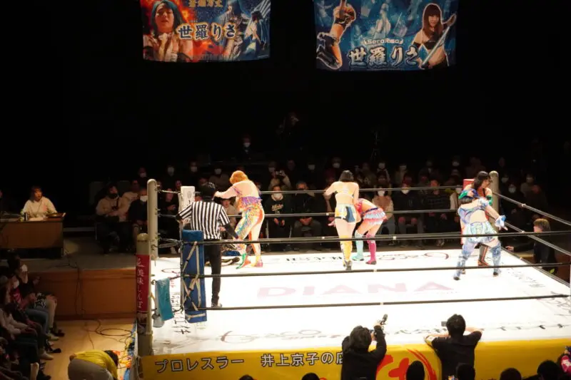 ▼第4試合 世羅りさ&美蘭&ジャガー横田 vs 井上京子&藤田あかね&ななみ