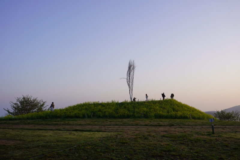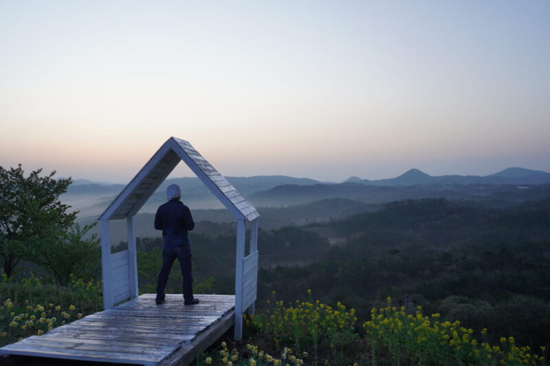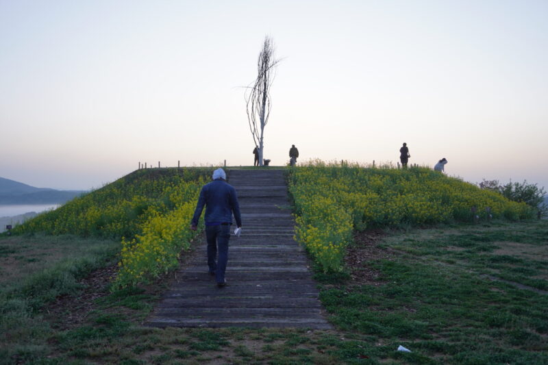 菜の花に囲まれた丘が日の出と雲海のフォトスポットになっています。