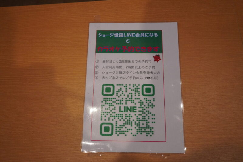 ショージ世羅店のLINE会員になりますと、カラオケ予約が可能となります。