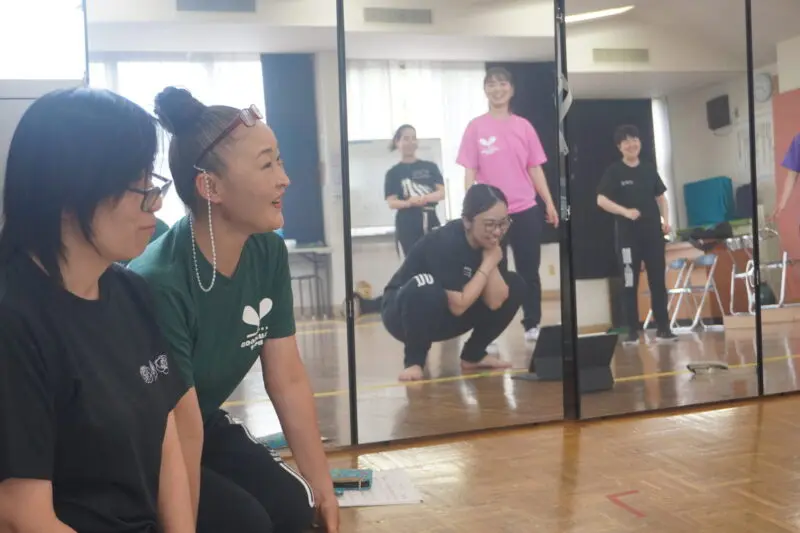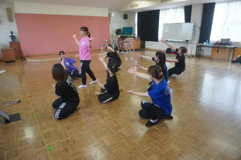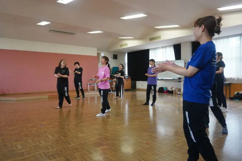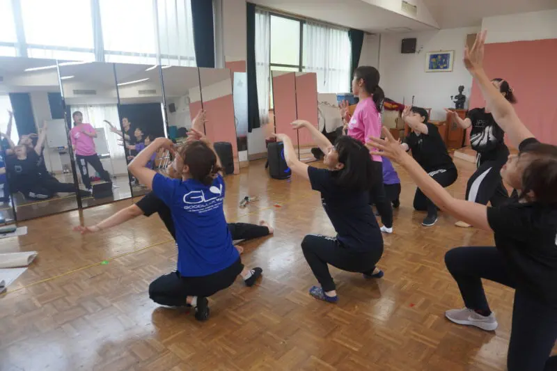 鏡に映る自身の姿を確認しながら、皆さんで細かな振り付けを確認、模索しながらより良い演技を求めて、試行錯誤が続きます。