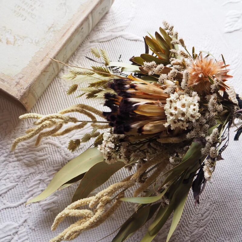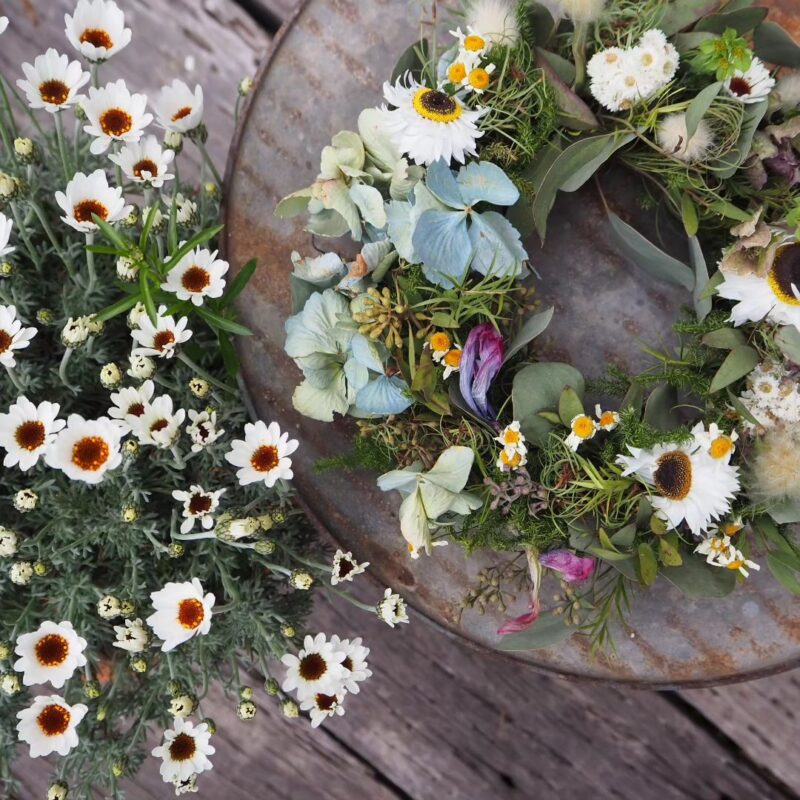 里山の暮らしの中で、四季折々に咲く草花に自然を身近に感じながら、花を乾かし、ドライフラワーにした植物たちで、花束やリース作っております。