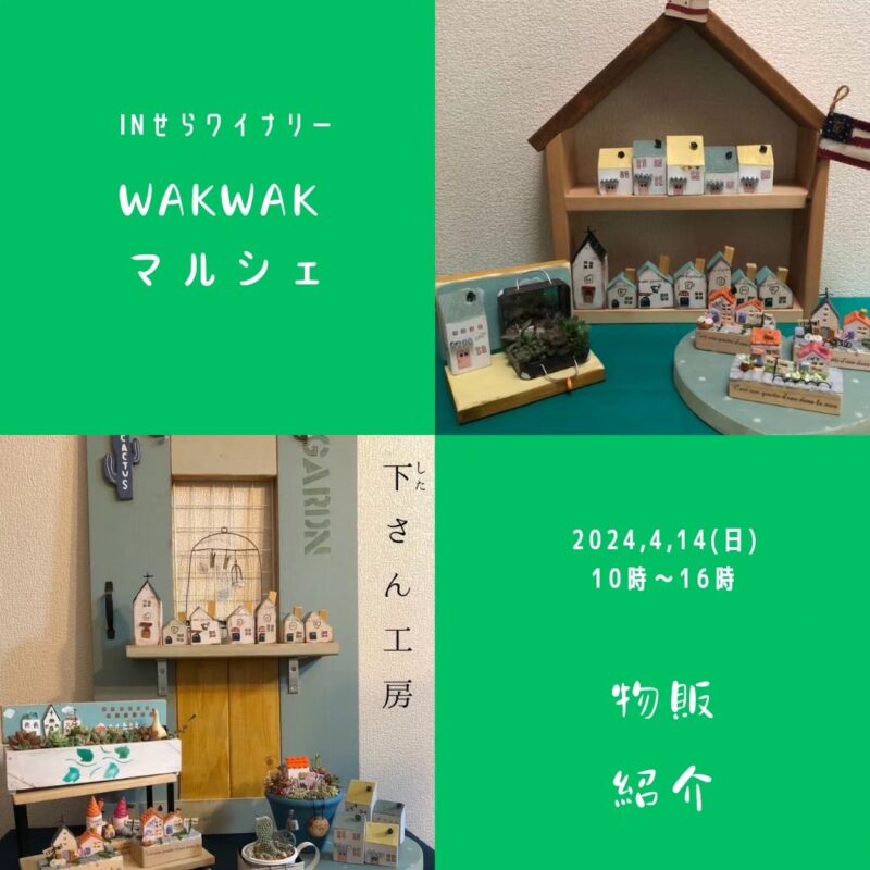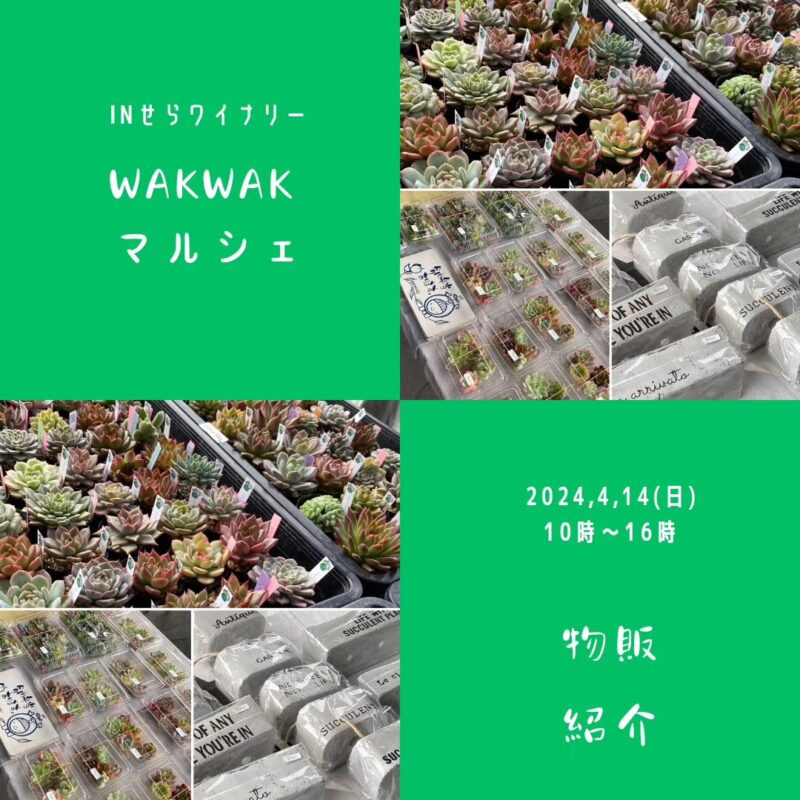 4月14日(日)せらワイナリーで「wakwakマルシェ」が開催されます。