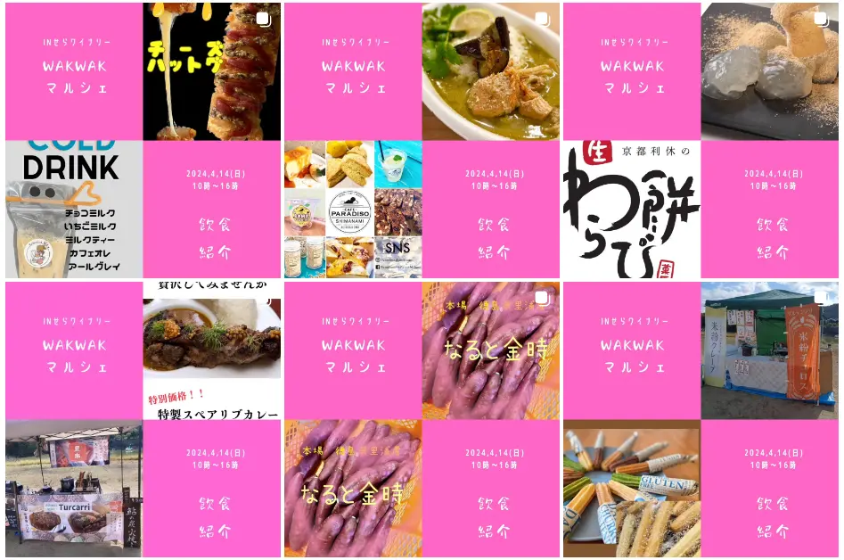 wakwakマルシェのインスタグラムでは、各店舗を詳しく紹介しています。