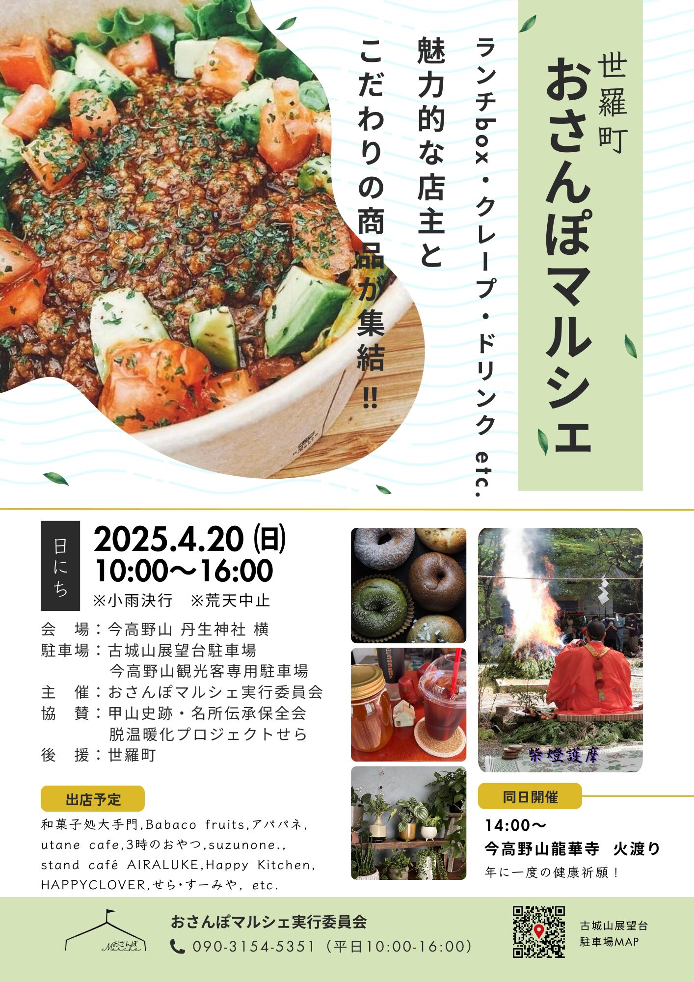 2025年4月20日(日)今高野山の丹生神社横(テニスコート跡)でおさんぽマルシェが開催されます。