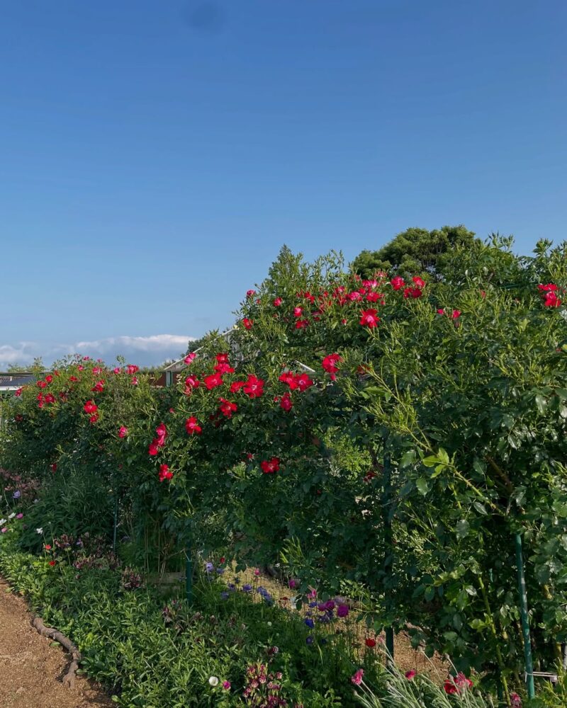 つるバラと季節のハーブたちの共演をお楽しみください。