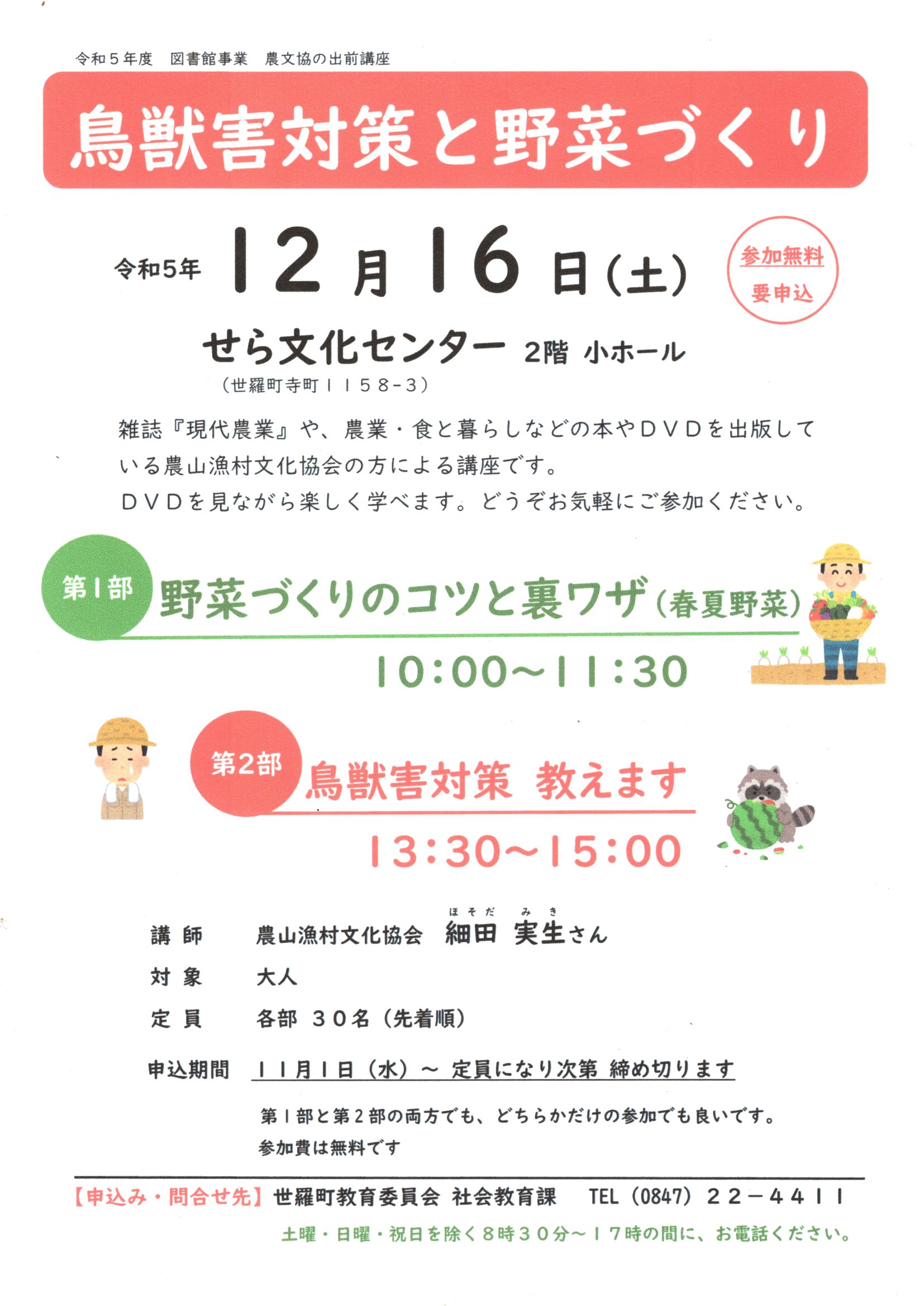 申込・お問い合わせ先:世羅町教育委員会 社会教育課 電話:0847-22-4411