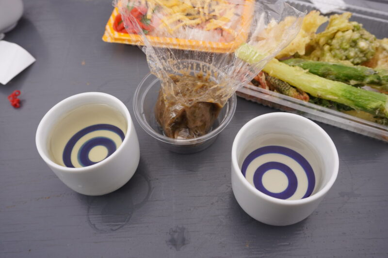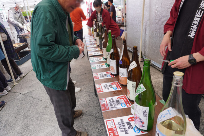試飲券と交換で、さきほど頂いたおちょこにお好みのお酒をついでもらえます。