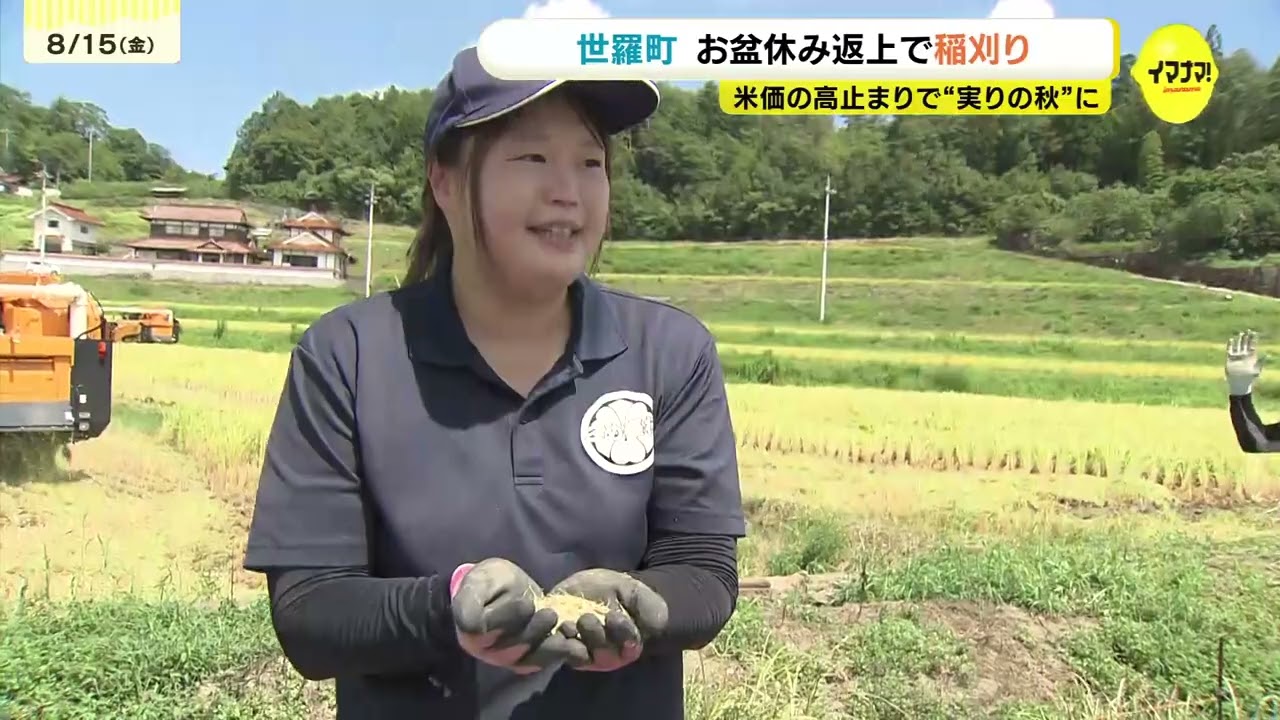 動画タイトル『「農家が成長産業になってきた」お盆休み返上で稲刈り 米価高止まりで“実りの秋”に 広島・世羅町