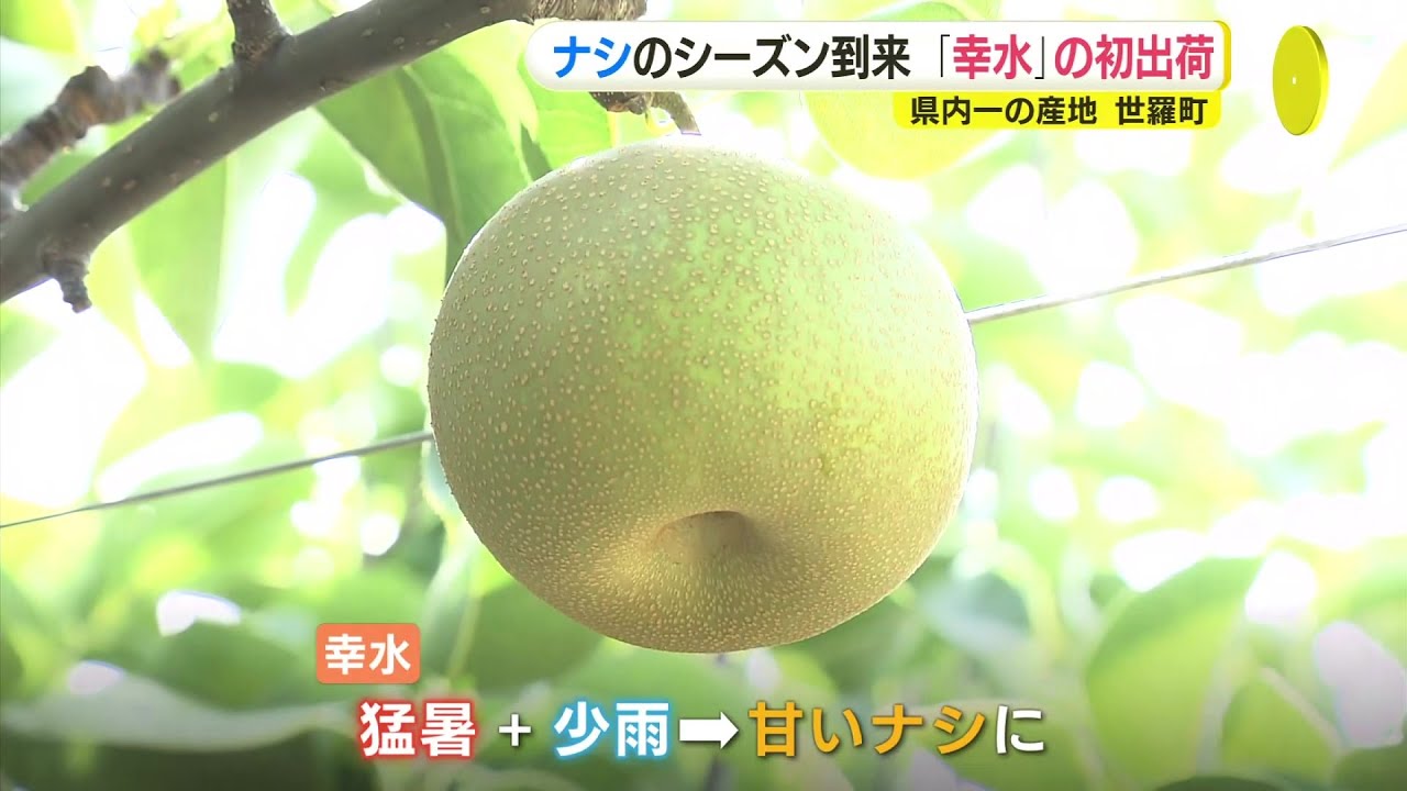 動画タイトル『「カメムシ警報」発表の中で ナシのシーズン到来「幸水」初出荷 県内一の産地・世羅町』